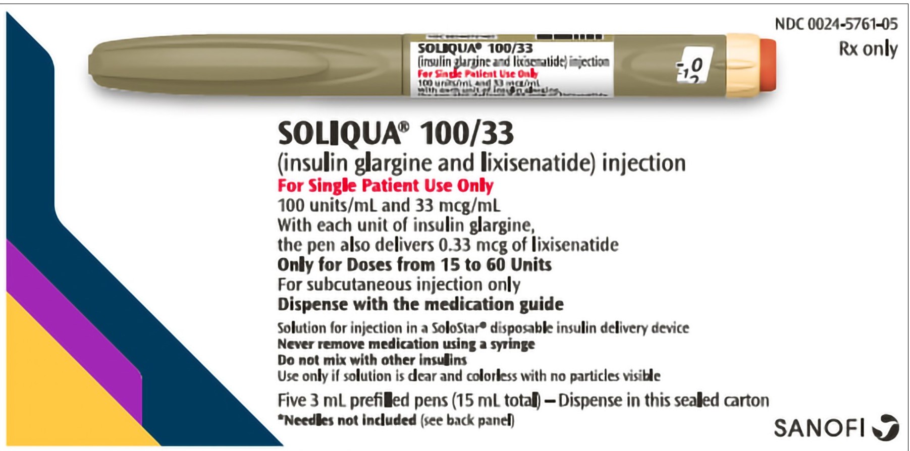 Two medications are included in Soliqua 100/33:Long-acting insulin glargine and lixisenatide is a member of the class of medications known as glucagon-like peptide 1 (GLP-1) receptor agonists. Soliqua 100/33 is available as an injectable pen that is intended for subcutaneous (self-injection) use. There are 33 microgrammes (mcg) of lixisenatide and 100 units of insulin glargine per millilitre (mL) of medication solution in each pen. Exogenous insulin such as insulin glargine is necessary to lower plasma glucose levels since endogenous insulin production progressively decreases as type 2 diabetes worsens. Insulin is a standard treatment for type 2 diabetes but side effects including weight gain and hypoglycemia can restrict how well it works.